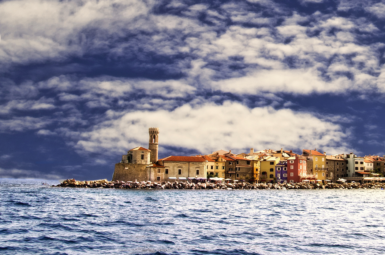 Středověký Piran je zasazený na malý poloostrov Jadranského moře. Město bývá označováno jako „nejitalštější“ přímořské město Slovinska. Dominantou města je kostel sv. Jiří se zvonicí, jež kopíruje benátskou věž kostela San Marco. Ve městě najdeme pro přímořská městečka netypické, mramorem vydlážděné velké kruhové náměstí, dále starobylý přístav, stísněné kamenné uličky i krásnou promenádu podél pobřeží. Z městských hradeb jsou pak okouzlující výhledy.