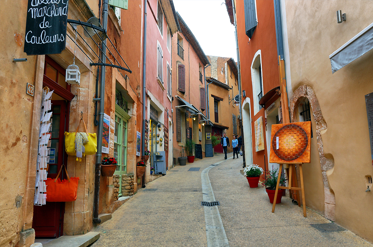 Roussillon je malá vesnička na jihu Francie, 30 km od Avignonu. Vesnička se právem řadí mezi nejkrásnější ve Francii. Díky nedalekým okrovým dolům (jedny z největších nalezišť na světě) mají zdejší domky sytě červený nádech, který ostře kontrastuje s okolními tmavě zelenými kopci.