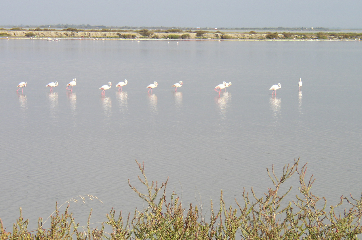 Proslulá oblast mokřadů o rozloze přes 1000 km² v deltě Rhôny při pobřeží Středozemního moře je domovem pro až 400 druhů zvířat včetně plameňáků, turů a camargských koní. Mezi typickou květenu patří limonka, tamaryšek, rákos, slanorožec, divoké kosatce a divoký rozmarýn. Park se nalézá na strategicky významném místě pro migrující ptáky, kteří jej na svých tazích využívají k odpočinku. Jedním ze symbolů přírodního parku Camargue jsou plameňáci. Velký význam pro oblast má sůl, která se tu získává již po staletí.
