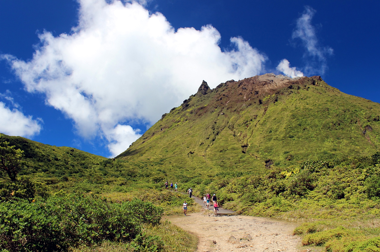 Odlet na Guadeloupe do hlavního města Pointe-a-Pitre. Možnost výstupu na nejvyšší vrchol ostrova i celého souostroví Malých Antil – činnou sopku La Soufriere (1467 m), z níž stále stoupají sirné výpary. Jízda po západním pobřeží ostrova Basse Terre, koupání v Karibském moři. Kaskáda tří vodopádů na řece Carbet s nejvyšším vodopádem východního Karibiku (110 m): koupání v jezírku pod vodopádem. Výlet deštným pralesem k vodopádu Moreau, dle počasí hlavní město Pointe-a-Pitre a přesun na nejvýchodnější výběžek Pointe des Chateaux s koupáním v korálových lagunách.
