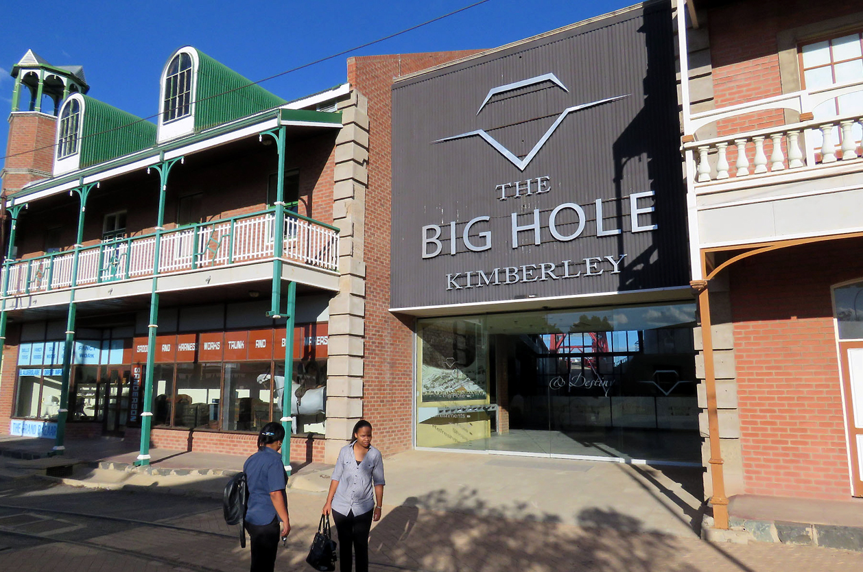 Prohlídka slavné „Velké díry“ (Big Hole), největší jámy na světě ručně vykopané lidmi. Výkop, jehož obvod měří asi 1500 m a jeho hloubka je 240 m, byl v letech 1871 – 1914 obrovským nalezištěm diamantů v hodnotě přesahující 14 miliónů karátů (2722 kg). Skanzen.