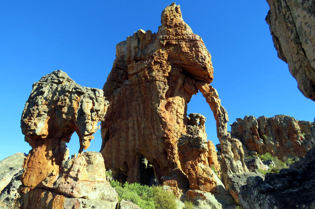 Cedrové hory, kamenná brána Wolfbergarch, oblouky, malby Křováků. Skalnatá poušť, kaňon řeky Orange, kde dunící vody na příkrém srázu vytvářejí jeden z nejkrásnějších světových vodopádů.
