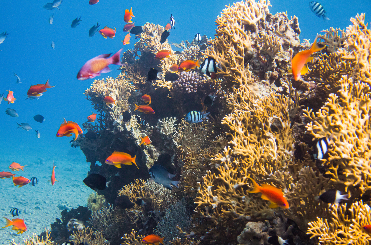 Přístav Akaba – nejjižnější bod cesty. Volný den pohody u tropického Rudého moře: koupání, šnorchlování, glassboaty, barevný svět korálových útesů.