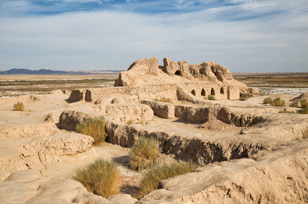 Výlet do pouště Kyzylkum k dva tisíce let starým hliněným pevnostem Toprak Kala a Ajaz Kala. Nocleh v tradičních jurtách pod pevností.