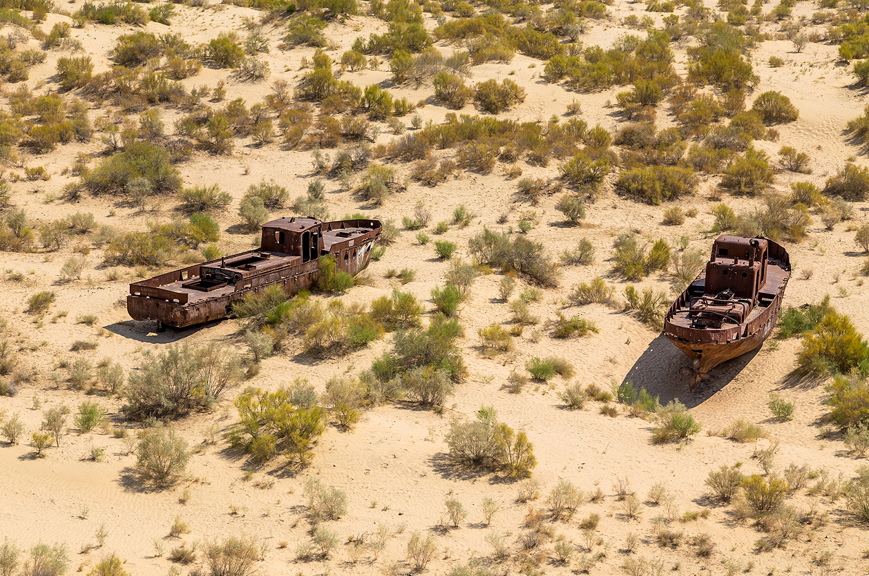 Odlet do metropole Uzbekistánu. Taškent: Památník nezávislosti, Timurovo muzeum. Přelet do střediska Karakalpacké autonomní republiky – Nukusu: Savického galerie s díly zachráněnými před zničením za Stalinova režimu. Bývalé přístavní město Mujnak u vysychajícího Aralského jezera. Vraky lodí na někdejším jezerním dně, muzeum Aralského jezera, starodávné pohřebiště Mizdachán.