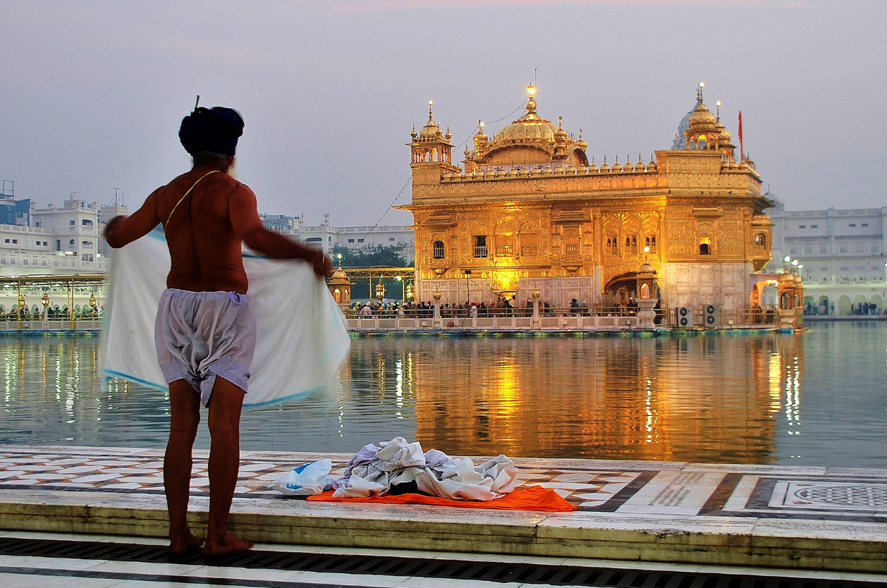 Přejezd na severozápad do indické části Paňdžábu. Amritsar: magická svatyně Sikhů – Zlatý chrám. Omamná večerní atmosféra u posvátného jezírka kolem chrámu (i s možností přenocování). Studna Jallianwala Bagh – místo masakru 2000 Indů (viz film Gándhí). Přejezd na severovýchod přes Pathankot do hor „Malého Tibetu“.