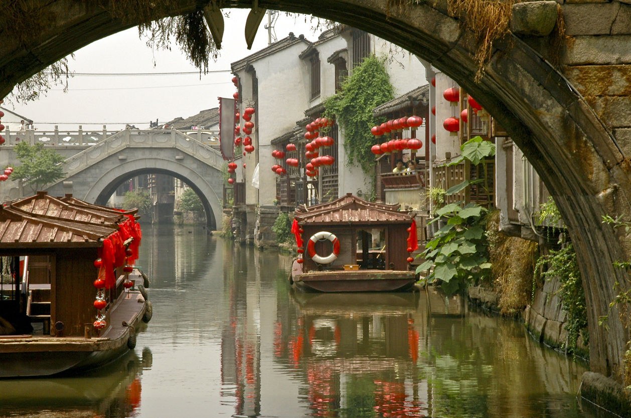 Let do Šanghaje, hlavního konkurenta metropole Pekingu a dnes snad nejdynamičtějšího asijského města. Transfer z letiště nejrychlejším vlakem světa Maglev (až 431 km/hod). Nábřeží Bund, vyhlídka z Perly Orientu, 468 m vysoké televizní věže. Možnost plavby lodí po řece Čchuang-pchu centrem města kolem nejznámějších mrakodrapů, návštěvy představení akrobatů aj. „Benátky Orientu“, jedno z osmi „vodních měst“ u Velkého kanálu a jezer při ústí Jang-c´-ťiangu – Tchung-li (Tongli): malebné středověké město vodních kanálů a typických kamenných mostů.