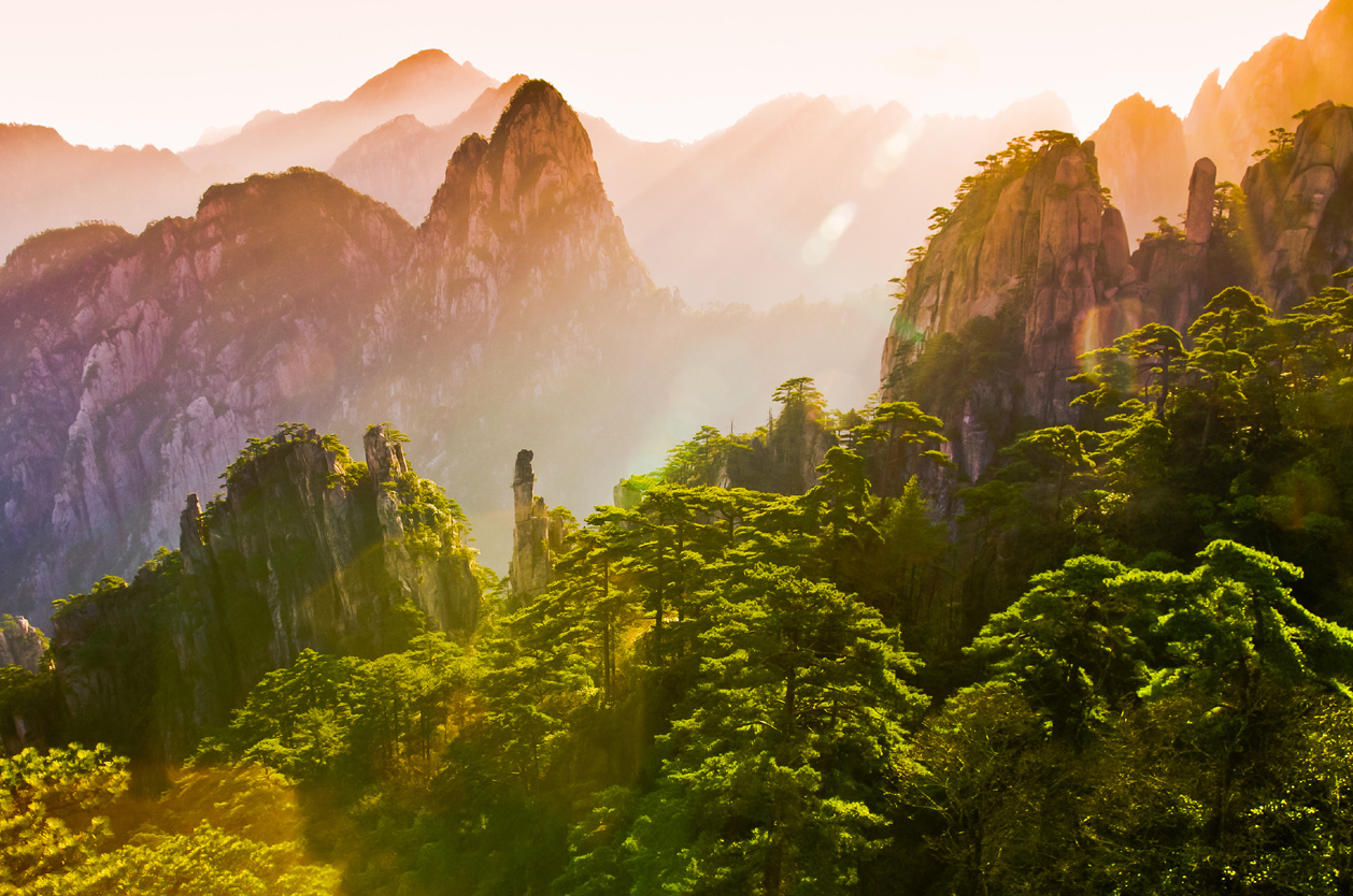 Masiv Čchuang-šan – nejslavnější čínské přírodní scenérie Žlutých hor se 72 vrcholky: lanovkou a pěšky na nejvyšší vrchol Lotosový květ (1864 m), koupání v termálech Nachového obláčku.