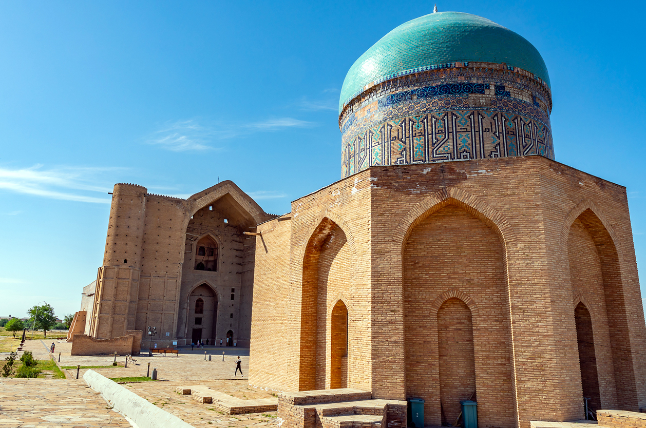 Přejezd z Kyzylordy do Turkestánu, zastávka v ruinách starobylého města Sauranu. Turkestán: mauzoleum Chodži Ahmeda Jassávího – nejslavnější a nejkrásnější stavba Kazachstánu. Po dávné obchodní trase do Šymkentu. Přelet do bývalé metropole a největšího města Kazachstánu Almaty (dříve Alma-Ata) pod masivem Zailijského Alatau v pohoří Ťan-šan: Centrální mešita, katedrála Zenkov, rozsáhlé náměstí Respublika Alany s Památníkem nezávislosti, tržiště Zelený bazar nebo návštěva lázní.