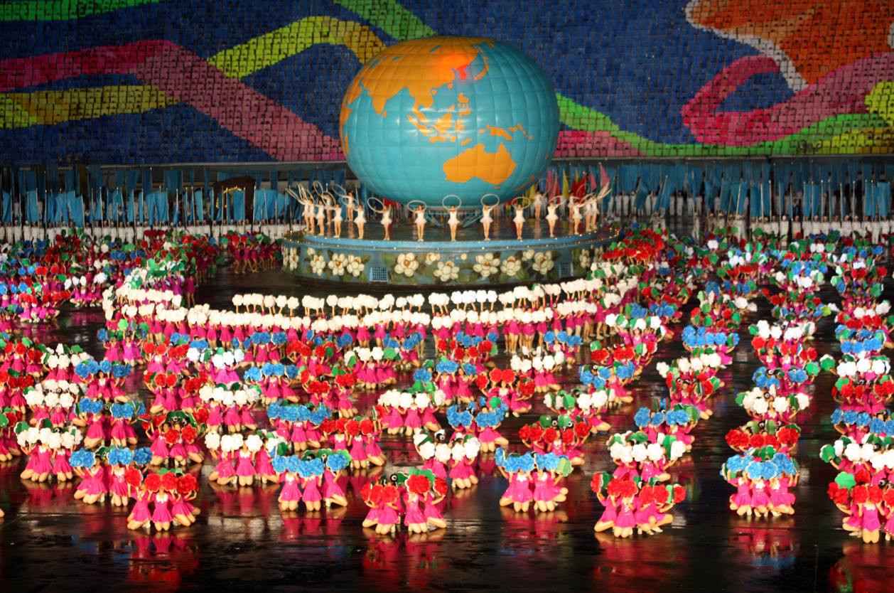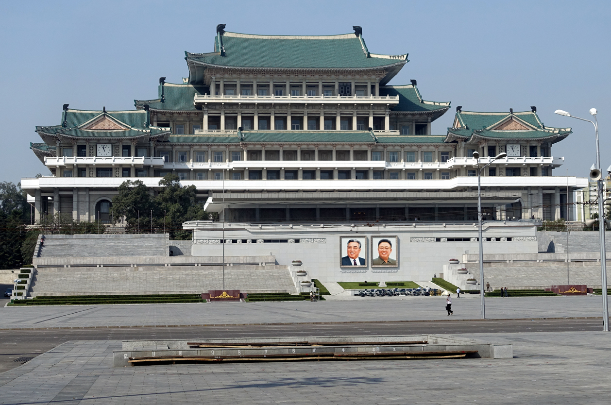 Přelet do hlavního města KLDR Pchjongjangu. Ubytování v 4* hotelu Yanggakdo (170m). Projížďka městem: Triumfální oblouk (vysoký 60 m a větší než pařížský). 170 m vysoká věž Čučche se zářícím plamenem: jedinečná vyhlídka na celý Pchjongjang s dominantami obřího stadionu 1. Máje – dějiště Arirangů a především konečně dostavěného, ale stále nefunkčního Rjugjongu (s 330 m a 105 patry v 80. letech plánovaný jako největší a nejvyšší hotel světa). Obří komplex Mansudae – parlament a památník s 20 m sochami Kim Ir-sena a Kim Čong-ila (kladení květin), Památník zakladatelů strany s 50 m vysokým srpem, kladivem a štětcem.