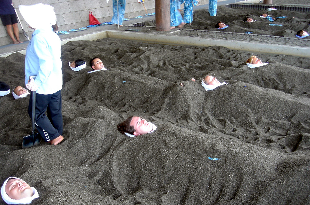 Přejezd šinkansenem Hikari do Ósaky a další linkou až na jih ostrova Kjúšú. „Japonská Neapol“ Kagošima. Nejjižnější poloostrov Japonska Sacuma-Hantó. Čiran: skanzen ulice samurajů, muzeum kamikaze. „Koupel“ v přírodním horkém písku v lázních Ibusuki – jediných svého druhu na světě.