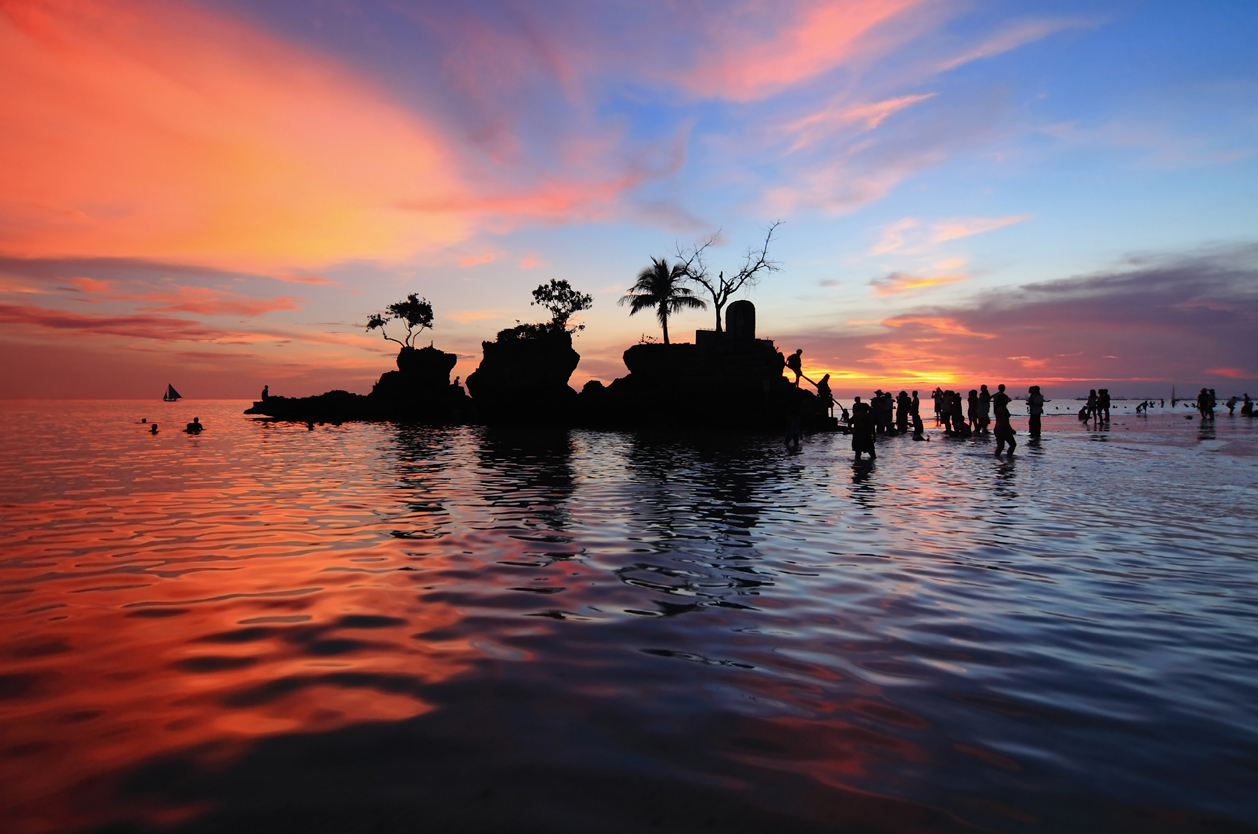 Odlet do střední části Filipín na souostroví Visayas. Pobyt na prohřátém ostrově Boracay, jehož 5 km dlouhá Bílá pláž lemovaná palmami s jemným pískem a smaragdovým mořem je řazena mezi deset nejkrásnějších pláží světa. Rozloučení se starým rokem a oslava nového (silvestrovskou večeři s lahví sektu máte v ceně zájezdu). Dny rajské pohody: slunění, koupání, možnost výletů se šnorchlováním na korálových útesech. Jedinečné lokality pro potápěče, možnosti krátkodobých kurzů i pro začátečníky. Pravé filipínské masáže, diskotéky, bary, kulinářské speciality. Možnosti různých výletů na domorodých loďkách kolem ostrova, rybaření, golfu…