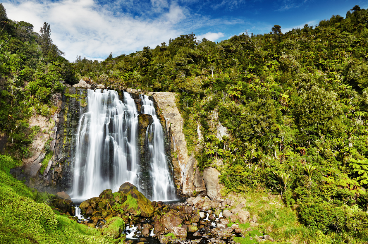 Poloostrov Coromandel: rozeklané mořské útesy, liduprázdné kaňony řek, hluboké lesy s vzácnými endemickými obřími kauri, přepychové písečné pláže. Fotogenická pobřežní jeskyně Katedrála, Hot Water Beach, kde si lopatkou na pláži sami vykopete svoji termální tůňku na koupání. Matamata a okolí – kulisy Hobitína a Kraje (Pán prstenů). Rotorua: bahenní sopky, gejzíry, maorské zpěvy a tance. Te Wairoa – novozélandské Pompeje, sopečná jezera. Měsíční krátery, divoké peřeje Huka na řece Waikato. Jezero Taupo, největší v Oceánii. N.P. Tongariro: Možnost výjezdu pod „Hlučnou díru“ – činnou sopku Mt. Ruapehu (2797 m), pěšího výletu k vodopádům Taranaki nebo „nejkrásnějšího jednodenního treku na světě“ pod sopkou Ngauruhoe s fantastickými výhledy na zasněžené štíty, lávové pouště a jezera. Hora Osudu z Pána prstenů – z Hobitína do Mordoru za 3 dny! Krasové jeskyně Waitomo: plavba na loďkách pod neznámými souhvězdími světlušek. Scénická Marokopa Road: skalní brána, jeskyně, vodopády. Návrat do Aucklandu.