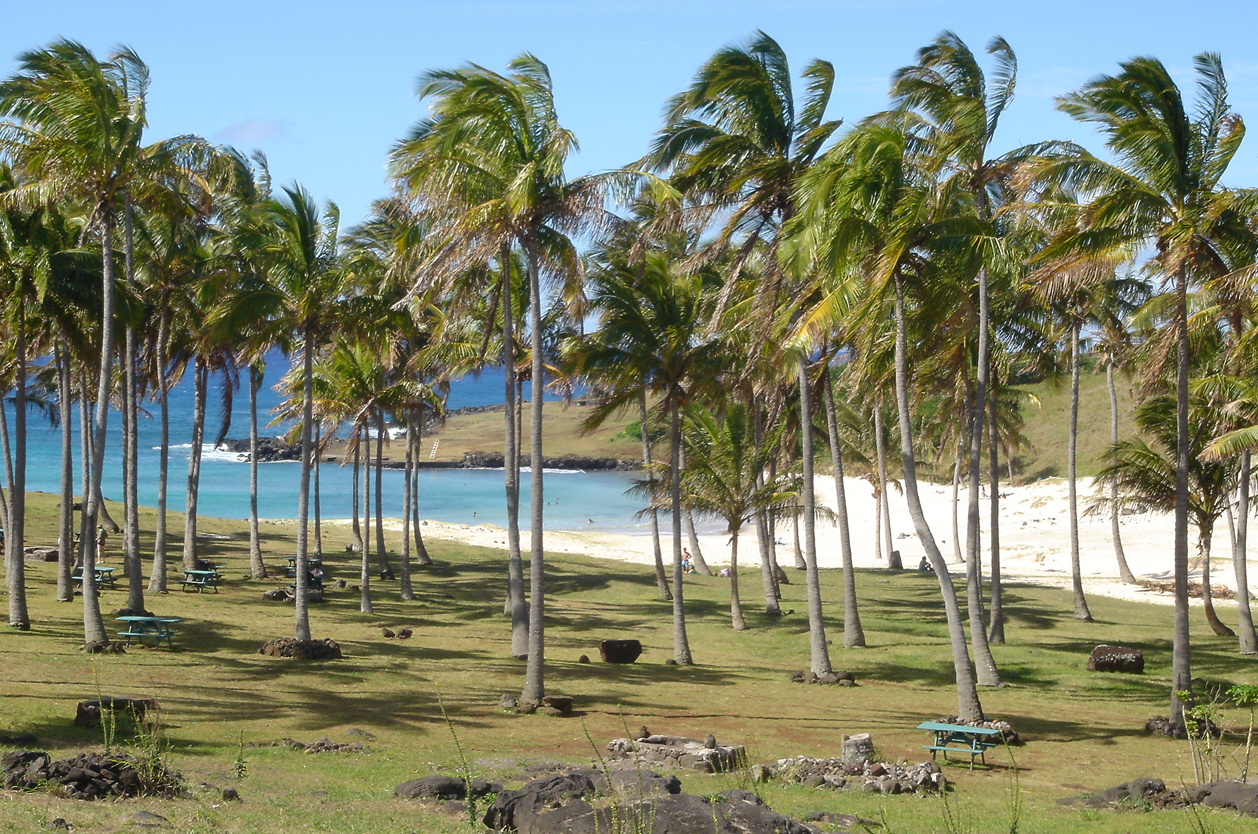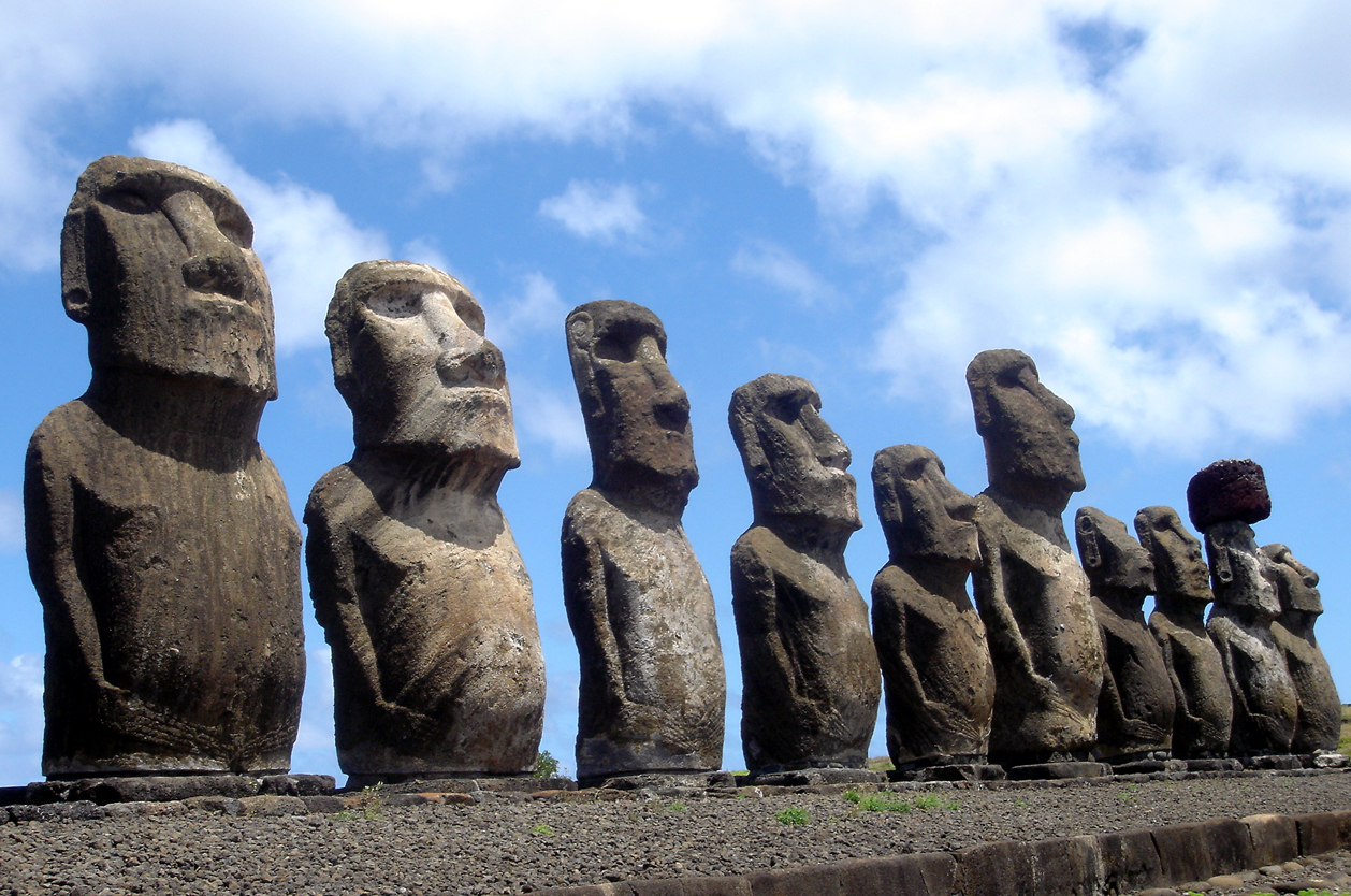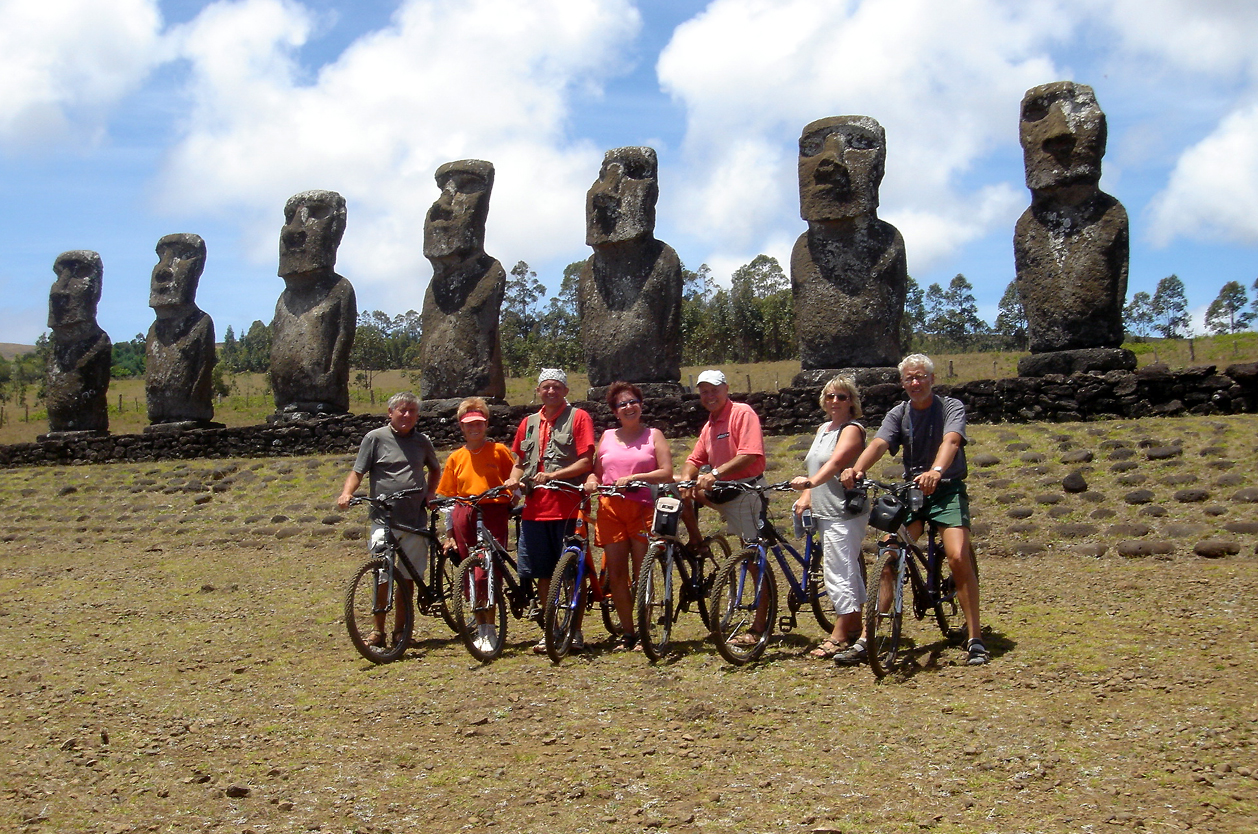 Noční let z Papeete na ostrov Rapa Nui, ve světě známější jako Velikonoční. Ubytování v jediné osadě ostrova – Hanga Roa. Prohlídka ostrova, který kromě 887 moai nabízí turistům i spoustu přírodních krás – krátery, útesy, lávové jeskyně a neopakovatelnou atmosféru izolovaného starosvětského místa, kde po ulicích jezdí gaučové na koních. Kráter Rano Kau, Orongo – vesnice kultu ptačího muže. „Továrna na výrobu soch“ – lom v Rano Raraku. Ahu Tongariki, Akivi, Vinapu. Pupek světa aj. Koupání pod moai na bělostné pláži Anakena s palmovým hájem. Prohlídky pěšky a autem, možnost pronájmu kol, motorek či koní. Možnost návštěvy show s tanci původních obyvatel. Přelet zpět na Tahiti.