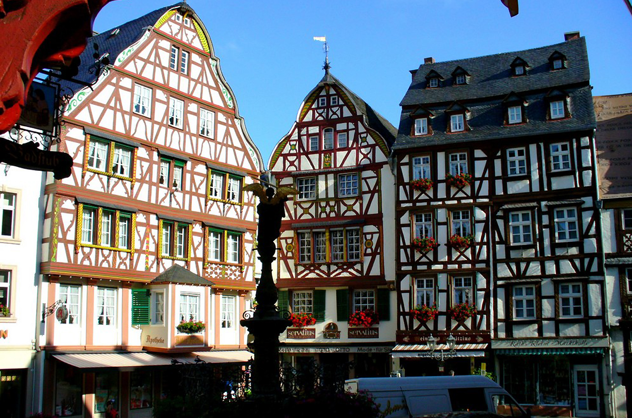 Pod hradem Landshut do středověké vinařské obce Bernkastel-Kues s hrázděnými domy a vinotékou. Na kole pokračujeme podél krásných meandrů Mosely pod svahy obtěžkanými vinicemi přes Kröv a Trarbach s promenádou a kavárničkami do Reil.