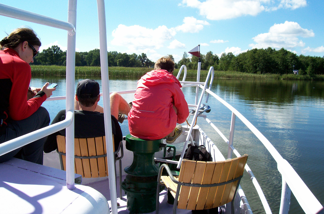 Vyhlídková cesta pronajatou lodí po jezerech spojených unikátní soustavou kanálů z Giżycka do „perly Mazur“, městečka Mikolajki s historickými domy. K obřímu jezeru Śniardwy se svou legendou o zakleté dívce. Odpočinek, koupání či na kole do přírodní rezervace vodních rostlin jezera Lisunie. NA KOLE: 0-14km (volitelně)