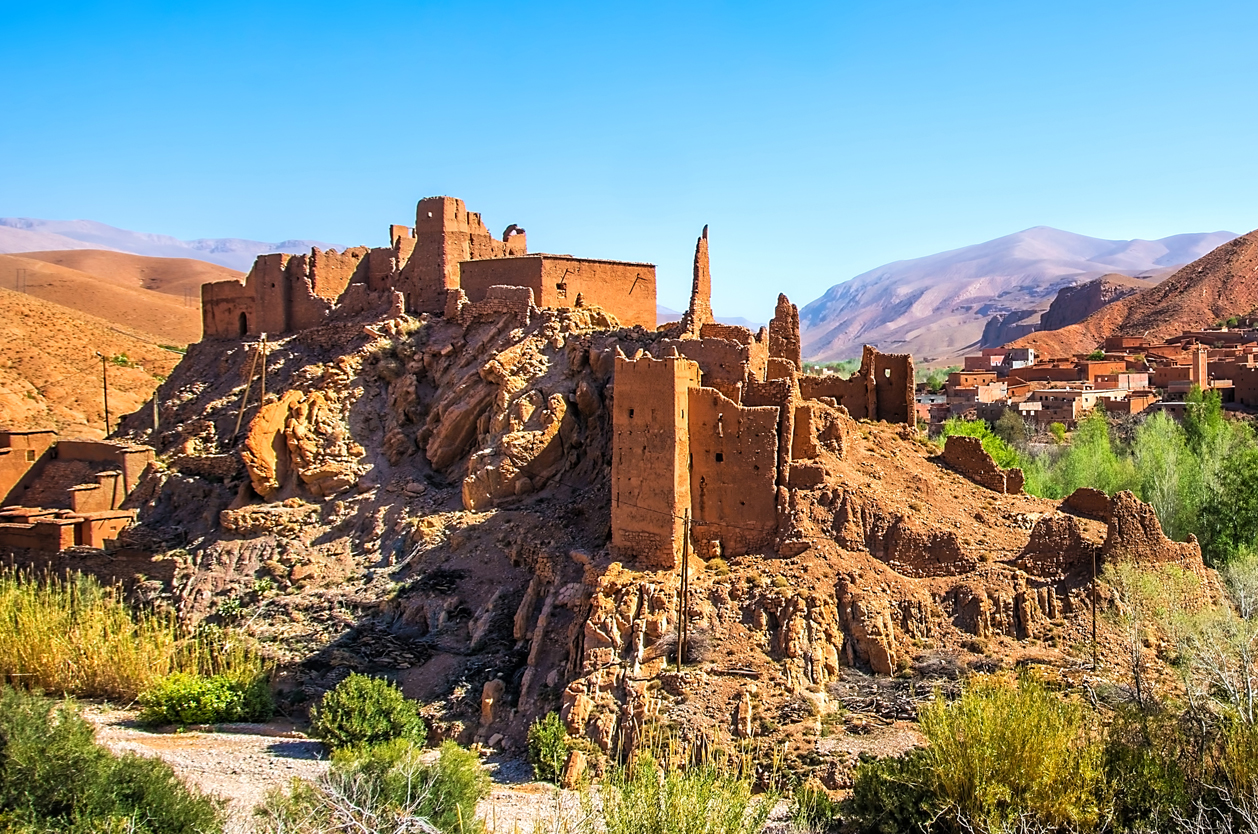 Pohádkové scenérie Údolí tisíce kaseb (hliněných pevností). Romantická oáza Skoura, „Marocký Hollywood“ Warzazát (Ouarzazate). Nejkrásnější ksar (opevněná vesnice) Ait Benhaddou. Cesta Vysokým Atlasem přes průsmyk Tizi-n-Tichka (2260 m) na úpatí Toubkalu.